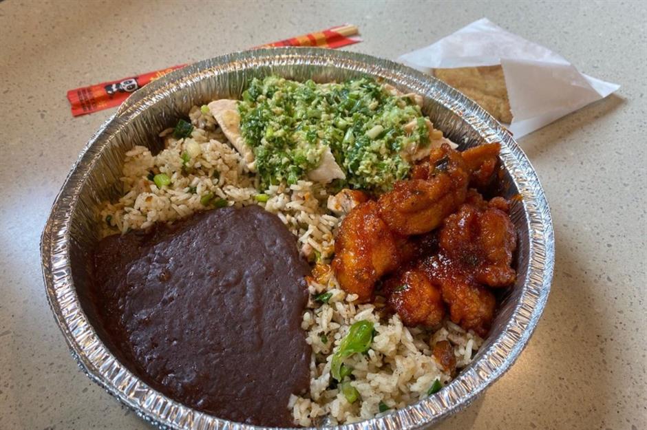Chinese and Mexican flavors aren’t often paired, but Chino Bandido in Phoenix has been blending them effortlessly since 1990. This beloved mom-and-pop eatery draws crowds with its bold, comforting takeout dishes. The menu is built around customizable bowls – start with a base of black beans, refried beans, steamed rice, or fried rice, then layer on proteins such as teriyaki chicken, Chinese barbecue pork, or spicy pollo diablo. The best part? You can mix and match to your heart’s content, creating a meal as adventurous (or as classic) as you like.