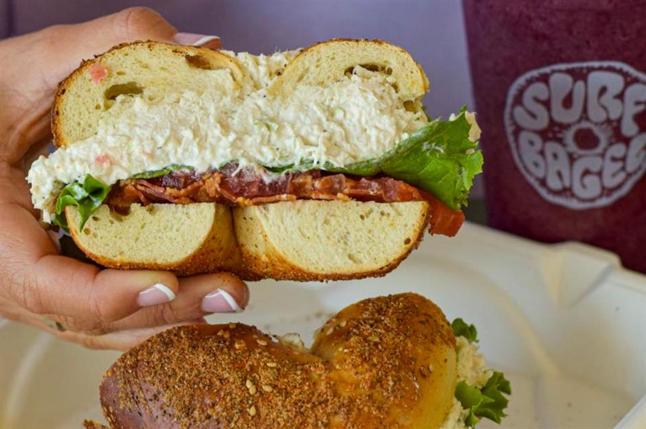 Whether you dine in, grab a bagel to go, or have it delivered, Surf Bagel always hits the spot. With six locations across the state, this beloved local chain has built a loyal following thanks to its stellar bagels and hearty breakfast sandwiches. Early risers come here for classics like an egg and cheese breakfast sandwich and a fully loaded breakfast burrito, stuffed with your choice of meat, eggs, American cheese, peppers, onions, and salsa. With more than 20 bagel varieties – from sesame to pumpernickel – you can customize your handheld with spreads like cream cheese, lox, and even peanut butter. And if breakfast isn’t your thing, Surf Bagel also serves plenty of tasty lunch and afternoon options.