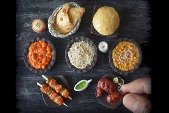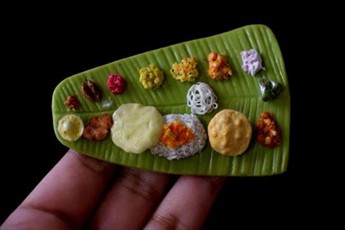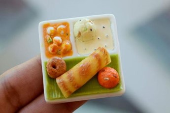The toasted sandwich and this spread of Indian food are actually part of a series of adorable miniature works of art crafted by artist Shilpa Mitha from Chennai, India.