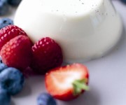 An extremely rich and creamy panna cotta – made with double cream, fresh vanilla and a sprinkle of golden sugar – needs something sweet to cut through it. Enter humble English berries (strawberries and blueberries?) in the summer time, or poached pears in winter.