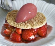 Ooh la la Raymond Blanc, what a fancy strawberry crumble! But don’t be deceived; it’s super simple to make this French take on an English classic, which layers macerated strawberries with a crumbly biscuit-esque topping. Finish with a scoop of raspberry sorbet.