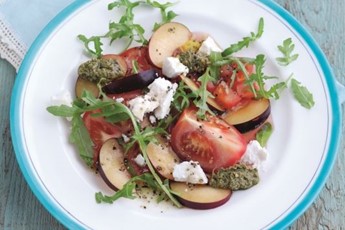 Fresh and fruity. Pick the sweetest, freshest plums and tomatoes you can get your mitts on, and try not to scoff them all while you're putting the salad together. Use sweet potatoes, gorgonzola and toasted pecan nuts to top off this exquisite salad.