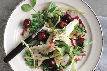 Another fruity option with cherries poached in red wine to give a beautiful subtle boozy flavour; best served with a glass of the same. Carve apart a chicken for its tender meat and serve with grilled courgette, pea shoots, radishes, and whatever else takes your fancy.