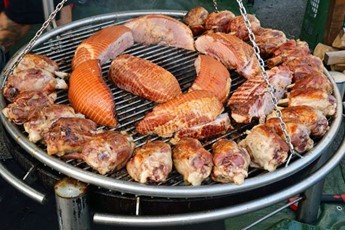 Adding a handful or so of herbs to your burning coals will give your food a little extra kick as it cooks. Some of the best herbs to use are basil, bay, blackcurrant, fennel, rosemary, sage, sweet cicely and blends such as thyme and mint to get that subtle herby hue.