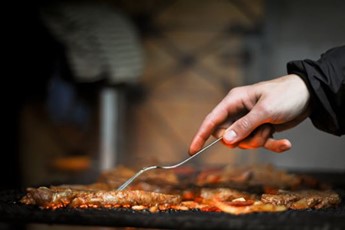 Dividing your grill into two parts can help you manage the temperature. Keep burning coals heaped on one side of the grill so you can cook meat on one side, then move it to the cooler side to rest when it’s done.
