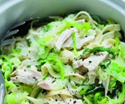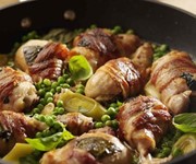 This is bound to be popular: bacon-wrapped chicken, with wintery veg and basil for freshness. Leeks taste delicious if they are cooked in bacon juices for five or 10 minutes. Serve with mashed potatoes or crusty bread, and make sure there is more than enough to go around – it’s a popular dish!