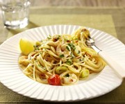 A simple pasta dish, flecked with chilli and flavoured with leeks, garlic and lemon. Season to taste, then serve in bowls with the rest of the lemon cut into wedges, for squeezing. Leeks, prawns and chillies are a wonderful trio, especially when pepped up with a bit of lemon zest.