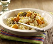 A wonderful vegetarian risotto (if you use veggie stock), flavoured with sage, leeks, Caerphilly cheese and pine nuts. For a special finish, heat 2 tbsp oil in a saucepan, then add a few sage leaves. Fry till crisp, drain on kitchen paper, then scatter over the risotto to serve.