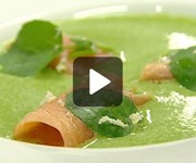 Alyn Williams places delicately curled pieces of smoked salmon (a Christmas essential) and watercress leaves into the bowl before gently pouring a velvety watercress, potato and shallot soup around them. Finish with fresh horseradish root. A light and elegant way to kick the feast off, we think.