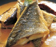 A fragrant fish stew from Aktar Islam, made by deep-frying aubergine chunks and okra, then combining it with pan fried chilli sea bass fillets and a creamy sauce made from coconut, curry leaves, ginger, turmeric, mango and some tamarind pulp. Ready and on the table in 40 minutes.