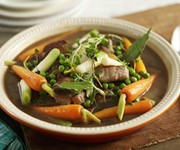 Make the most of banana shallots in this rich beef stew from Tom Aikens, who uses the British onion for flavour. Tom chooses chuck steak and adds depth to his dish with bacon lardons, puy lentils, fresh thyme and red wine. Cook for at least an hour until thick and rich, and serve with roasted veg.