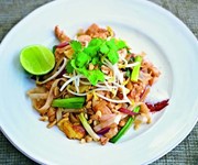 An authentic pad thai, made delicious with palm sugar, tamarind, roasted peanuts and much, much more. Tamarind purée is an important element in pad thaiand, along with the palm sugar and shrimp paste, gives this dish an authentic Thai flavour. Serve with lime wedges and extra chilli powder.