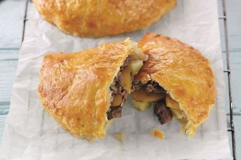 This one is really fun, and very tasty. Don't be scared away, it's really quite simple. The pastry is a simple mixture of flour, butter and water, worked into a dough. Then you lay finely diced filling (swede, potato, beef and onion) in the centre, fold it up, and bake it.