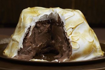This retro dessert is great fun to make, and also helps you to cool off on particularly warm days. Edd Kimber's version uses chocolate ice cream and he flavours his Swiss meringue with amaretto. The meringue should encase the ice cream, protecting it from the heat.