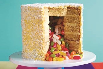 Perhaps the coolest cake we've ever seen, and an ideal choice for (big and little) kids' birthday parties. Make a tower of cake with a secret hole in the centre filled with jelly beans, milk chocolate beans or other sweeties, and watch the delight on the faces as they come spilling out.