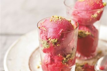 This homemade sorbet has a beautiful colour and a slightly spicy taste thanks to the cardamom infused into the mix during cooking. Smash up some pistachio nuts to top it all off, and you have a thirst-quenching alternative to ice cream ready to serve. If you don't like cardamom, simply leave it out.