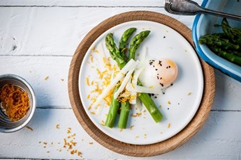 Asparagus spears are delicious dipped into runny egg yolks, though they face stiff competition from toast soldiers who defend their territory well. Give asparagus the edge by wrapping smoked salmon slices around your buttery spears.