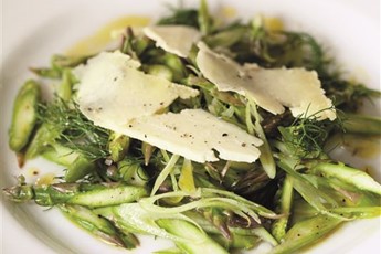 This one might divide opinions, as raw asparagus and fennel is not everyone's cup of tea. However, as there's no cooking involved it's a dish that would suit a hot day when you simply want something refreshing and quick. The Caerphilly cheese is a rare treat, too.