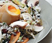 Rice with marinated soft-boiled eggs