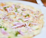 The most beautiful, elegant frittata we ever did see, Urvashi Roe picks her own edible flowers – chrysanthemums and dandelions – to make this fragrant brunch or supper. If you have fresh pansies or violas, you can use them too, as they’re also edible. Remember to wash flowers thoroughly first.