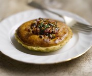 Andrew Nutter’s individual tart is the perfect breakfast treat. Whip up some shortcrust pastry (flecked with poppy seeds), then fill the tarts with a sticky shallot, garlic, honey and bacon mix, and finish with a rarebit topping. Bake for five minutes, finish under a hot grill, and serve with salad leaves.