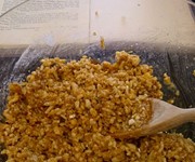 It really couldn't be simpler. In a mixing bowl, combine 4 oz suet (I stuck to the book's imperial way of things), 4 oz breadcrumbs, a pinch of salt, 0.75 oz cornflour, 3 oz lemon marmalade, 3 oz brown sugar, the grated rind of a lemon and three well-beaten eggs.