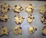 One of the many great things about Bath Buns is they are so easy to make. Once the dough has risen, you simply use spoons to blob the dough onto a baking tray lined with non-stick parchment paper. No fancy shaping, no fussy rolling. Just blobs.
