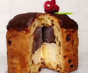 The fruity panettone is studded with plump sultanas and comes filled with either crème and Gianduja (a sweet, hazelnutty chocolate) ice cream, or Zabaione (an egg yolk, sugar and sweet wine concoction) and Gianduja ice cream. It would make a stunning centrepiece on any table, and is perhaps prettiest when cut open, revealing the stripes of filling inside.