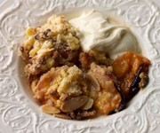 “Fantastic with fresh apricots, this is almost as good made with a couple of cans of apricots instead,” say recipe authors The Hairy Bikers. “And you'll love our special crumble topping, with almonds and marzipan.” It wouldn’t be right to eat your crumble without cream, custard or ice cream on top.