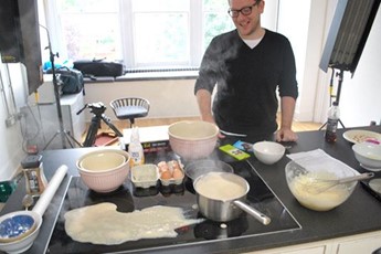 It was Andrew's turn again to do the Bake Off technical challenge this week, and who should drop into the loveFOOD kitchen but first-ever Bake Off winner Edd Kimber…