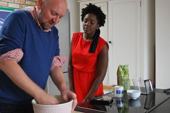 We started the clock and off I went. Kimberley was not impressed with my "two good pinches is about five grams, right?" approach to weighing the salt. I'm a pretty good judge of amounts though, and when I hit 90g of butter dead on by eye I felt empowered. This baking lark is easy!