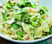 Avocado and mint make this pasta dish glow with fresh green colour. Peter Sidwell uses farfalle pasta in his recipe, but it would work just as well with any other kind. Feta and a last-minute squeeze of lime make it the perfect veggie summer salad.