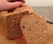breadBy Wednesday I really missed toast. But I’ve always had issues with supermarket loaves (just look at the lengthy ingredients list), and there isn’t a decent bakery near me, so I wheeled out my breadmaker instead. This is the model I've got, and it makes the most fantastic wholemeal loaf. I added pumpkin seeds to mine (there's a little seed dispenser tray which drops them into the kneading dough automatically), and it was made from nearly 100% stoneground wholemeal flour, plus the usual bread basics such as malt extract and raw cane sugar (see picture, bottom left). Homemade bread, even if it is done in a breadmaker, tastes like a different product to that which comes wrapped in cellophane and, loaf for loaf, it costs at least half the price.