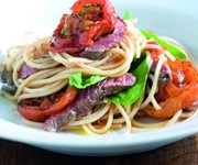 Not a truly authentic bolognese, because it's made with strips of minute steak instead of mince... but Peter Sidwell's quick-as-a-flash main is still one of our favourites, because of its simplicity and freshness of ingredients. Roasted tomatoes add texture and bitterness, while fresh basil is used for aroma.