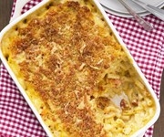 A poshed-up macaroni cheese recipe from The Hairy Bikers. Combine spicy pork and seafood with a creamy cheese sauce, a touch of paprika, and a crisp gratin topping. If the pasta is cooked before the sauce is ready, simply drain in a colander and toss with a little oil.