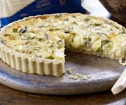 An indulgent all-butter Cheddar cheese and crab tart from Nathan Outlaw. It’s very simple to make and requires only pastry, eggs, cream, cheese, white and brown crab meat, and tarragon and spring onions for flavour. Bake until golden brown, then serve with a seasonal salad and crusty bread.