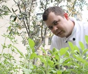 Leon, who previously worked alongside Adam Robinson and Dan Evans, both of who were sous chefs for Alistair Little, exclusively uses herbs grown from his own herb garden. Fresh mint goes into his pureed mushy peas, and basil for a basil sorbet and pistachio praline for dessert.