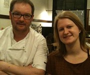 Head chef and veggie Andrew Dargue (pictured with me, left), who brought Vanilla Black from York to London with partner Donna Conroy in 2008, said that they only get one or two vegans in a day: “Vegetarianism is far more prevalent, and to be honest our priorities are vegetarian ones. But it’s quite easy to make a vegetarian recipe vegan, because of all the fantastic dairy-free products out there. The most useful ingredients for cooking vegan is soya milk. We use that in our desserts a lot”.