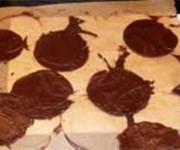 So I re-melted the chocolate and just used a spatula to create thin circles on baking paper with pre-drawn guidelines. To ensure they remained flat, I placed them in the fridge on a shelf. I waited patiently for about 30 minutes. It worked!
