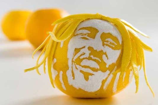 It would have been Bob Marley's 67th birthday on Monday. Coincidentally, he's just been voted the most influential musician ever in a poll by Jamaican fizzy grapefruit drink ting. So what did they do to mark these two auspicious occasions? They commissioned a portrait of him on a grapefruit. You can see it above.