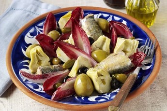 Starter Omar Allibhoy's olive winter salad is simple, tasty and made from things you’ve probably got lurking in the back of your cupboards. In fact you could use this as an opportunity to clear them out. If you find something really old let us know!
